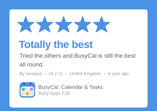 Tried the others and BusyCal is still the best all round.