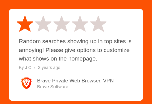 Random searches showing up in top sites is annoying! Please give options to customize what shows on the homepage.