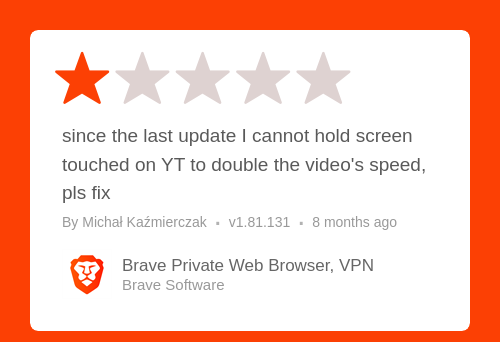 since the last update I cannot hold screen touched on YT to double the video's speed, pls fix