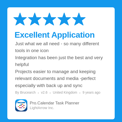 Just what we all need - so many different tools in one iconIntegration has been just the best and very helpfulProjects easier to manage and keeping relevant documents and media -perfect especially with back up and sync
