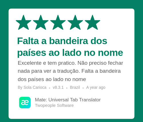 Excelente e tem pratico. Não preciso fechar nada para ver a tradução. Falta a bandeira dos países ao lado no nome