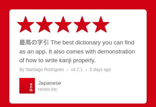 最高の字引 The best dictionary you can find as an app. It also comes with demonstration of how to write kanji properly.