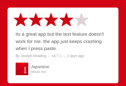 its a great app but the text feature doesn't work for me. the app just keeps crashing when I press paste.