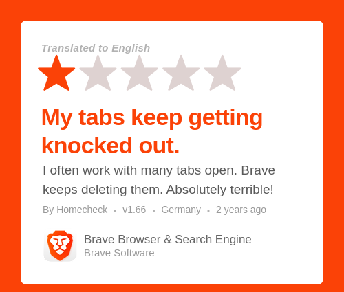 I often work with many tabs open. Brave keeps deleting them. Absolutely terrible!