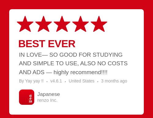 IN LOVE— SO GOOD FOR STUDYING AND SIMPLE TO USE, ALSO NO COSTS AND ADS — highly recommend!!!!